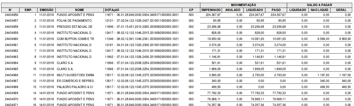 Relatório de Empenho: Lista todos os empenhos realizados em um período.